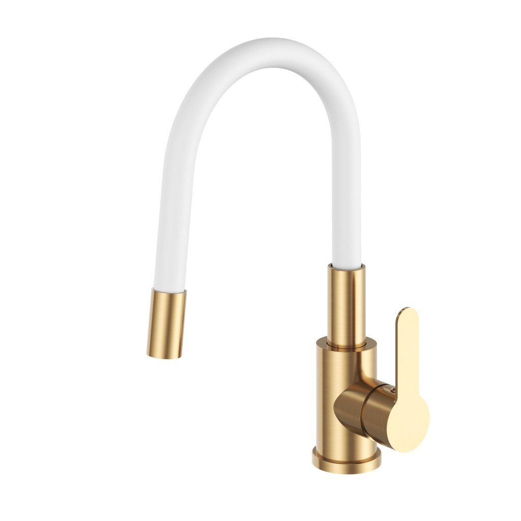 Gamma Flex 2000, baterie de chiuvetă independentă cu braț flexibil, alb-auriu mat, GMA-BFX-2000WHGD