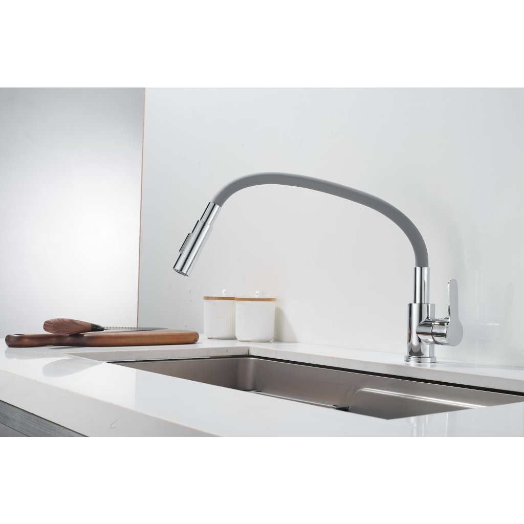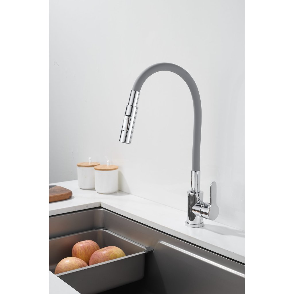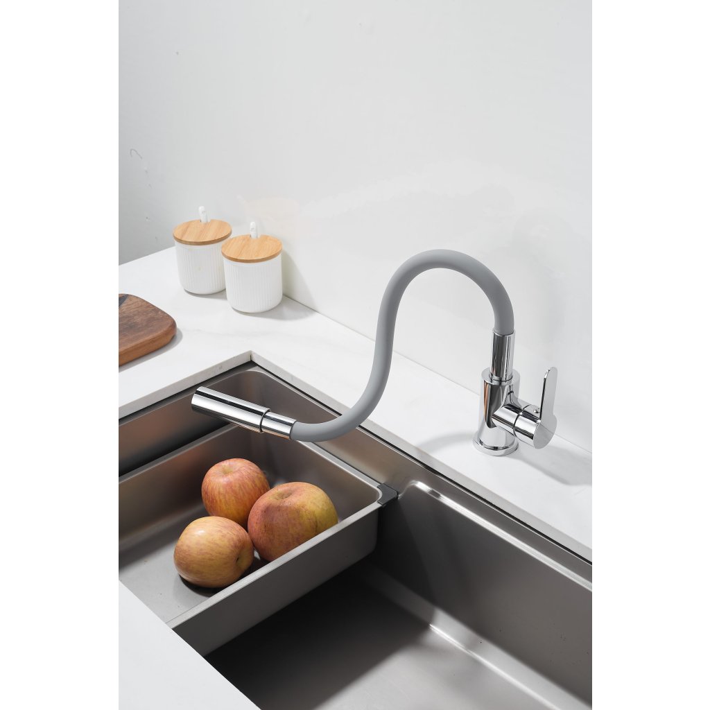 Bateria de bucătărie Flex 4000 combină un design modern și elegant cu o funcționalitate ridicată, lucru apreciat de toți cei care petrec timp în bucătărie. Gura sa elastică și flexibilă vă permite să direcționați convenabil jetul de apă exact acolo unde aveți nevoie. Acest lucru face ca spălarea vaselor, clătirea ingredientelor sau umplerea oalelor înalte să fie mult mai ușoară și mai confortabilă. Modelul este echipat cu un cap de duș cu funcție dublă , care vă permite să comutați rapid între jetul clasic și modul duș. Astfel, bateria se adaptează perfect nevoilor actuale ale utilizatorului - de la clătire blândă la curățare intensivă.