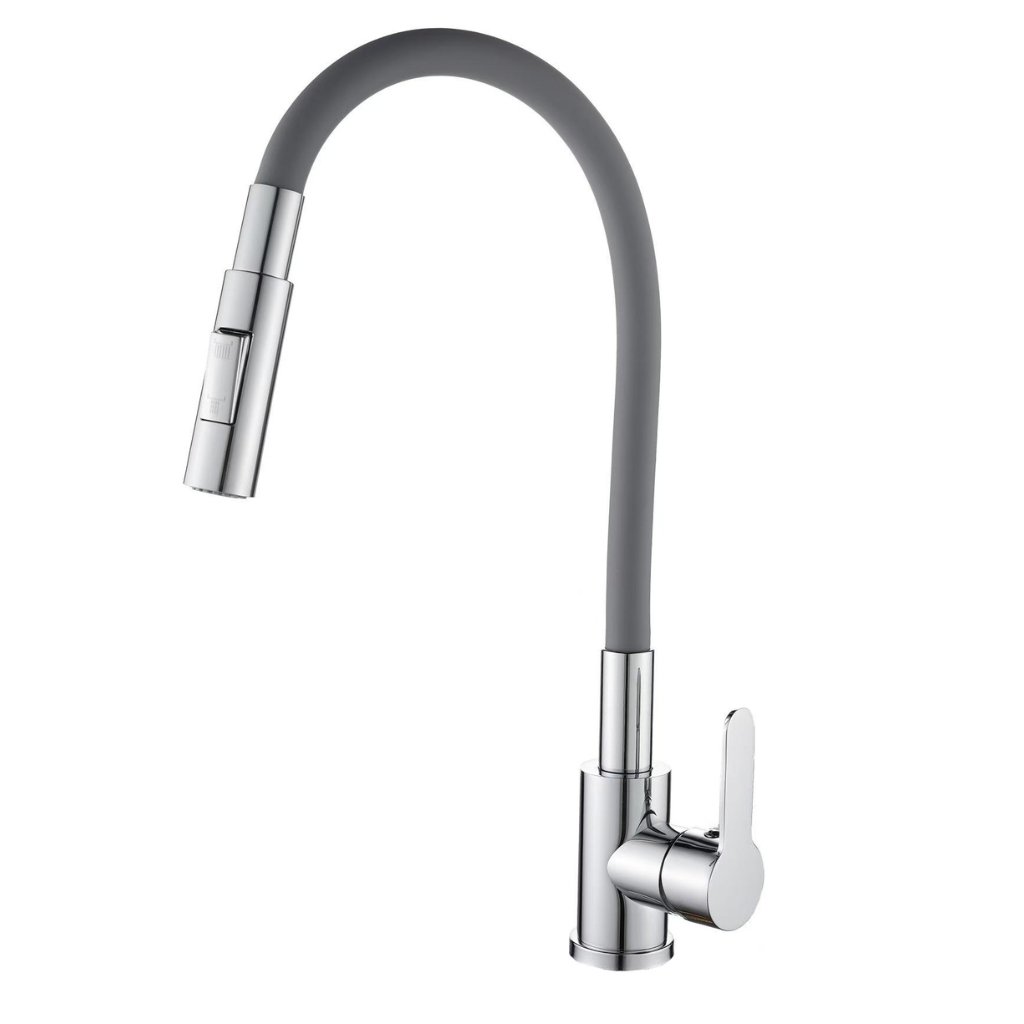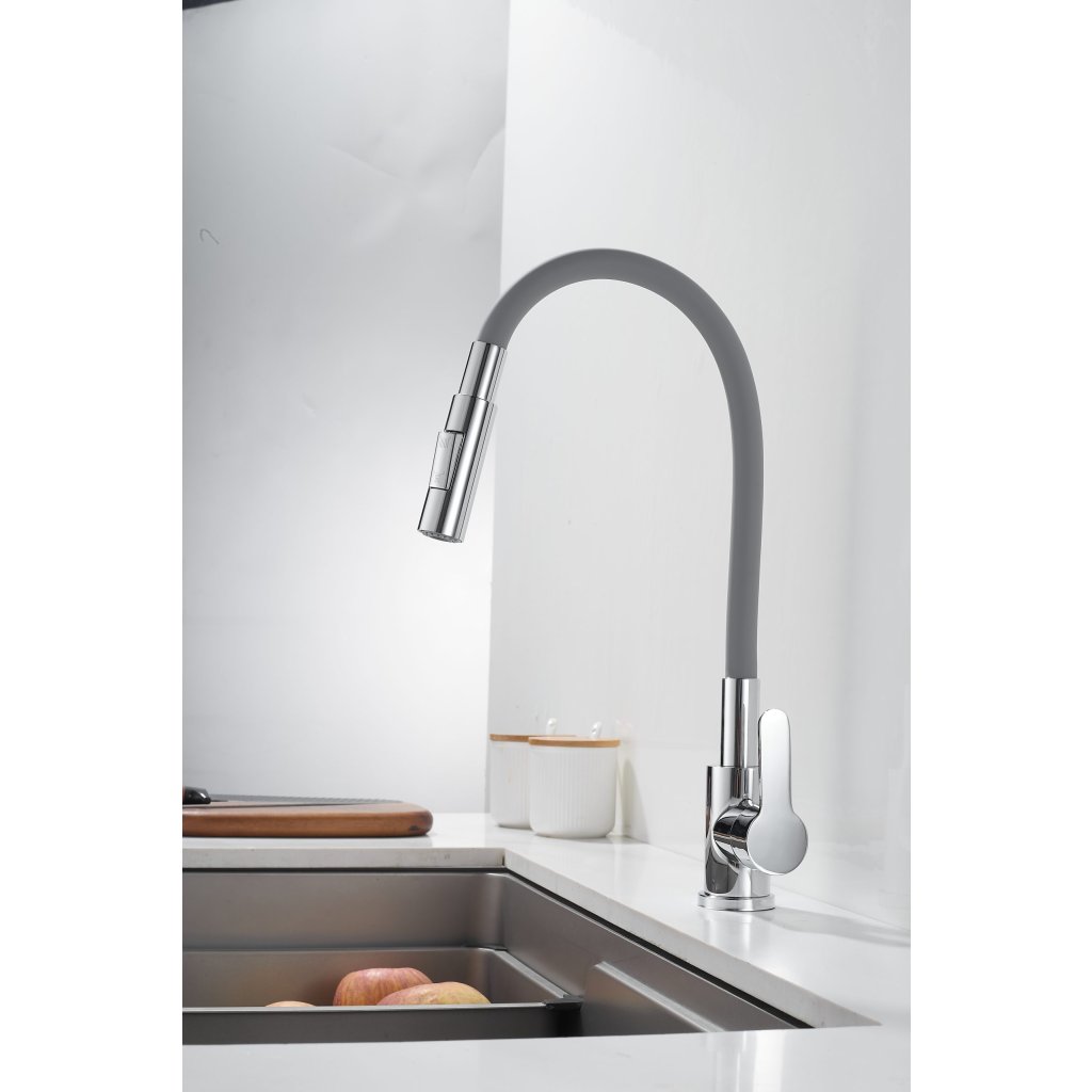 Gamma Flex 4000, baterie de lavoar independentă cu braț flexibil, pipă cu 2 funcții, gri-crom, GMA-BFX-4000G