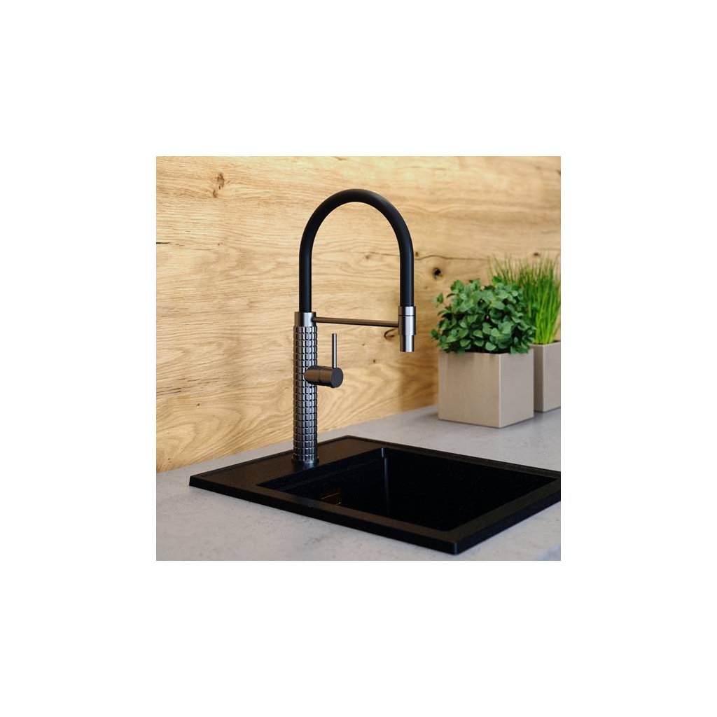 Gamma Full Pro, baterie de chiuvetă înaltă cu braț elastic, grafit, GMA-BFLP-GM