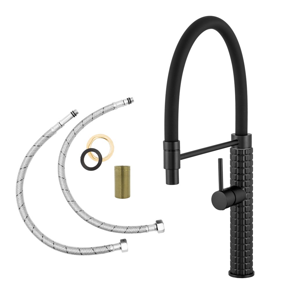 Gamma Full Pro, baterie pentru chiuvetă înaltă cu braț elastic, negru mat, GMA-BFLP-BK