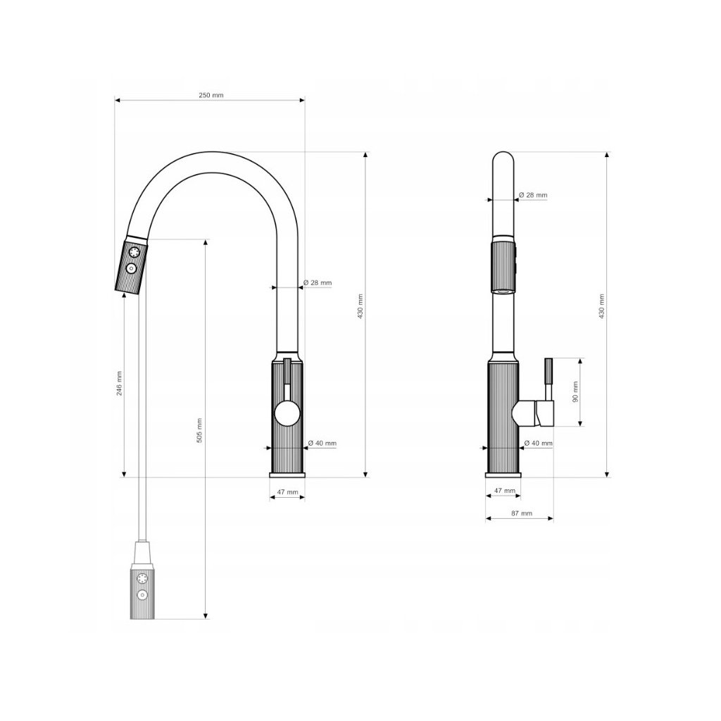 - Distanța de ieșire din interiorul robinetului: 25 cm