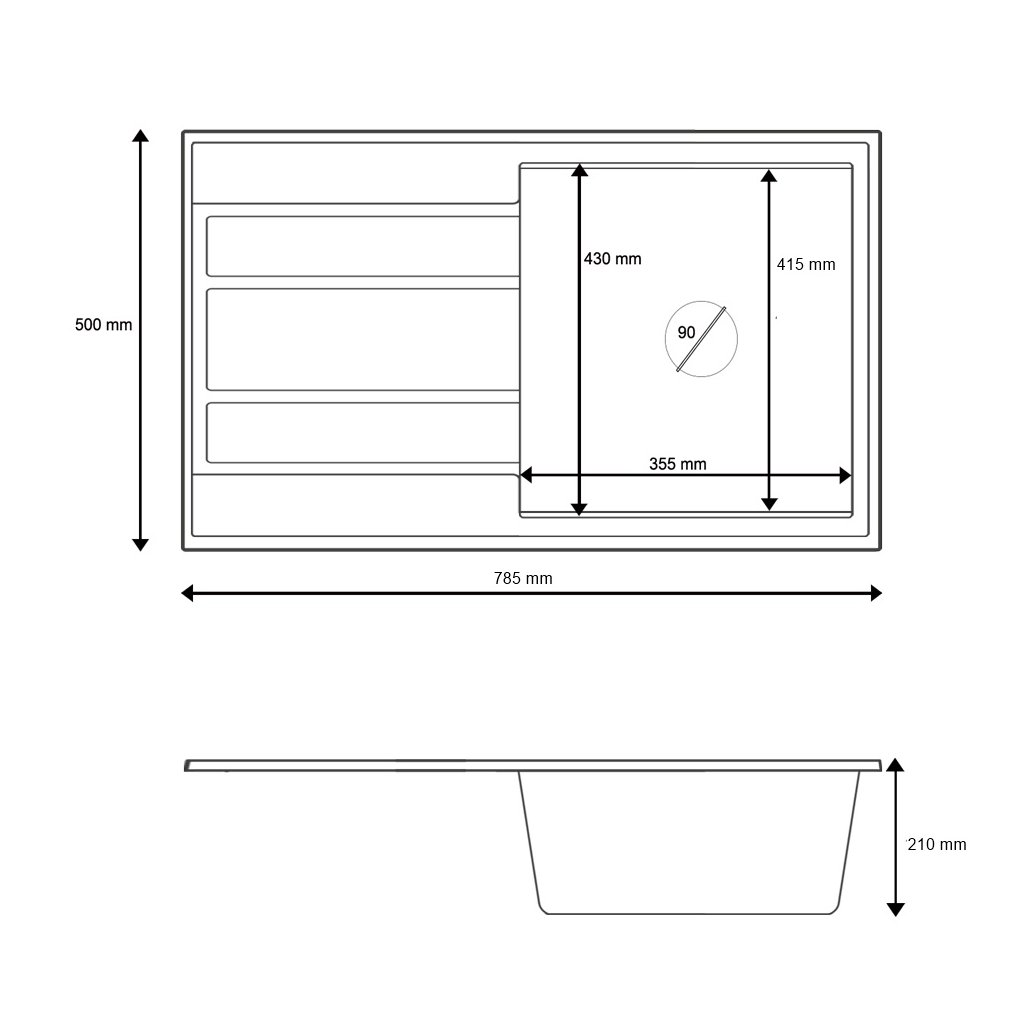 - Există o margine pentru o placă de tăiat în vasul chiuvetei. (placa de tăiat nu este inclusă cu chiuveta)