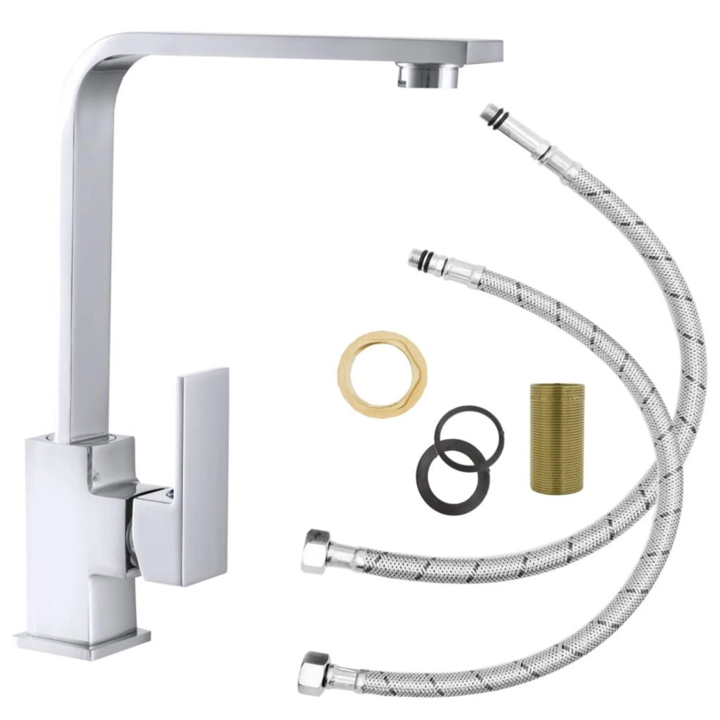 Setul cu robinetul chiuvetei contine toate elementele necesare asamblarii, datorita carora economisesti timpul de racordare la apa.
