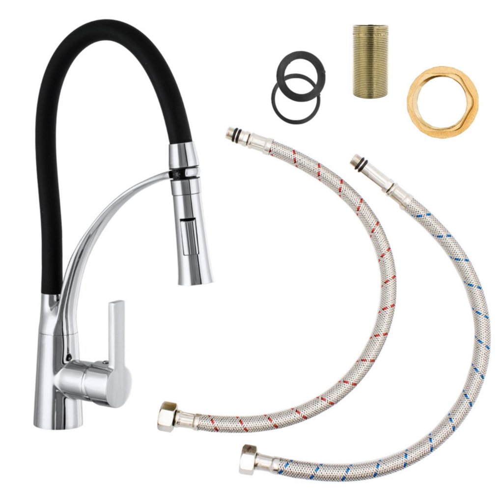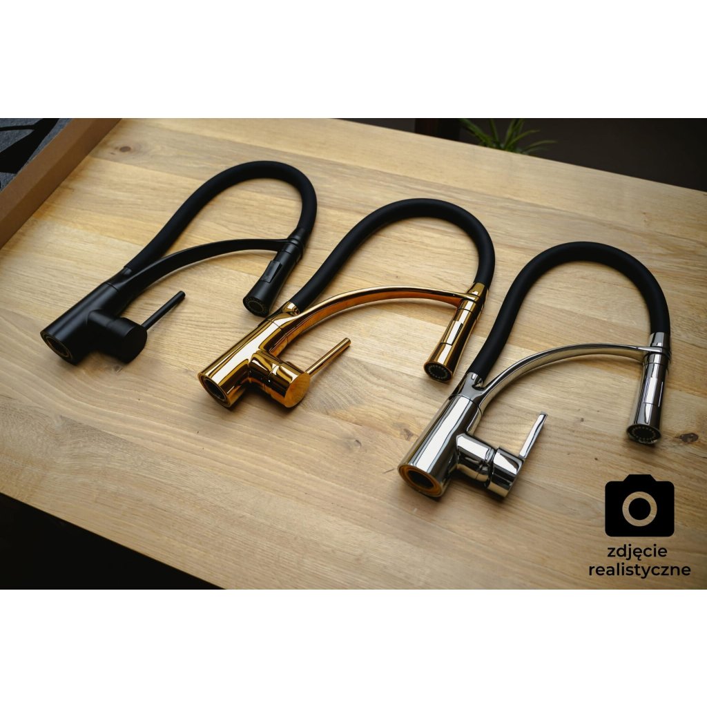 Gamma Nexo, baterie de bucătărie înaltă, de sine stătătoare, cu braț flexibil și spray, crom negru mat-lucios, GMA-BNO-CH