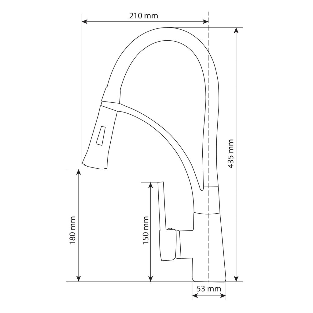 Robinetul de bucatarie are o gura elastica lunga, montata pe un suport metalic. Duza flexibilă este acoperită cu silicon de înaltă calitate, plăcut la atingere. Vă permite să setați liber intervalul bateriei.