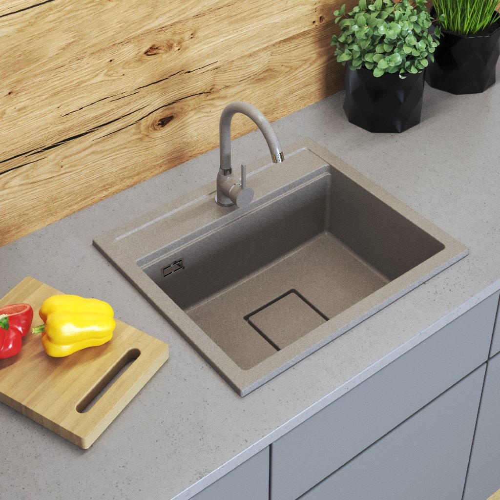 Gamma Quadro 5850, chiuvetă din granit cu 1 compartiment 580x495x220 mm, bej, GMA-ZLE000231
