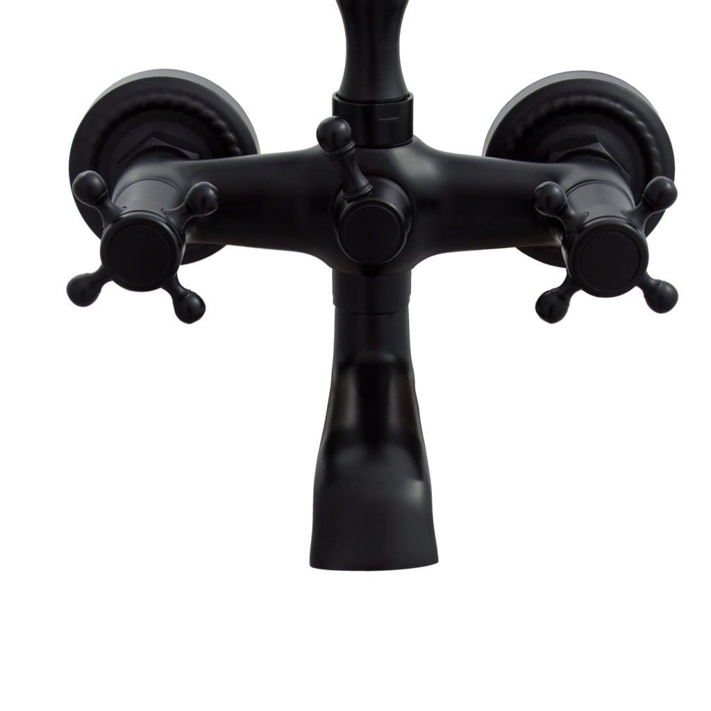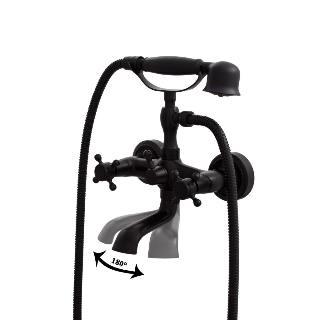 Gamma Retro, baterie pentru cada montată pe perete cu set de duș manual, negru mat, GMA-BROW-BK