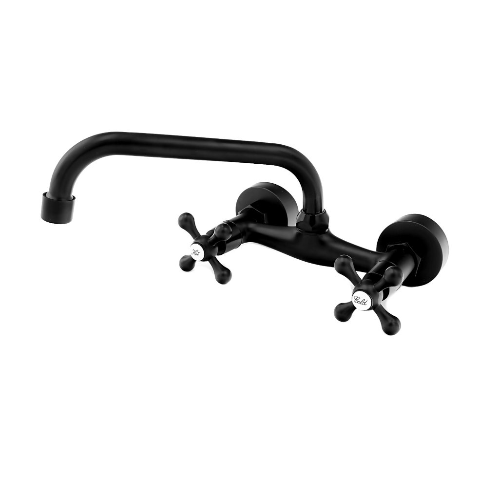 Gamma Retro C, baterie pentru chiuvetă de perete cu gura de scurgere în formă de C, negru mat, GMA-BROS-C-BK