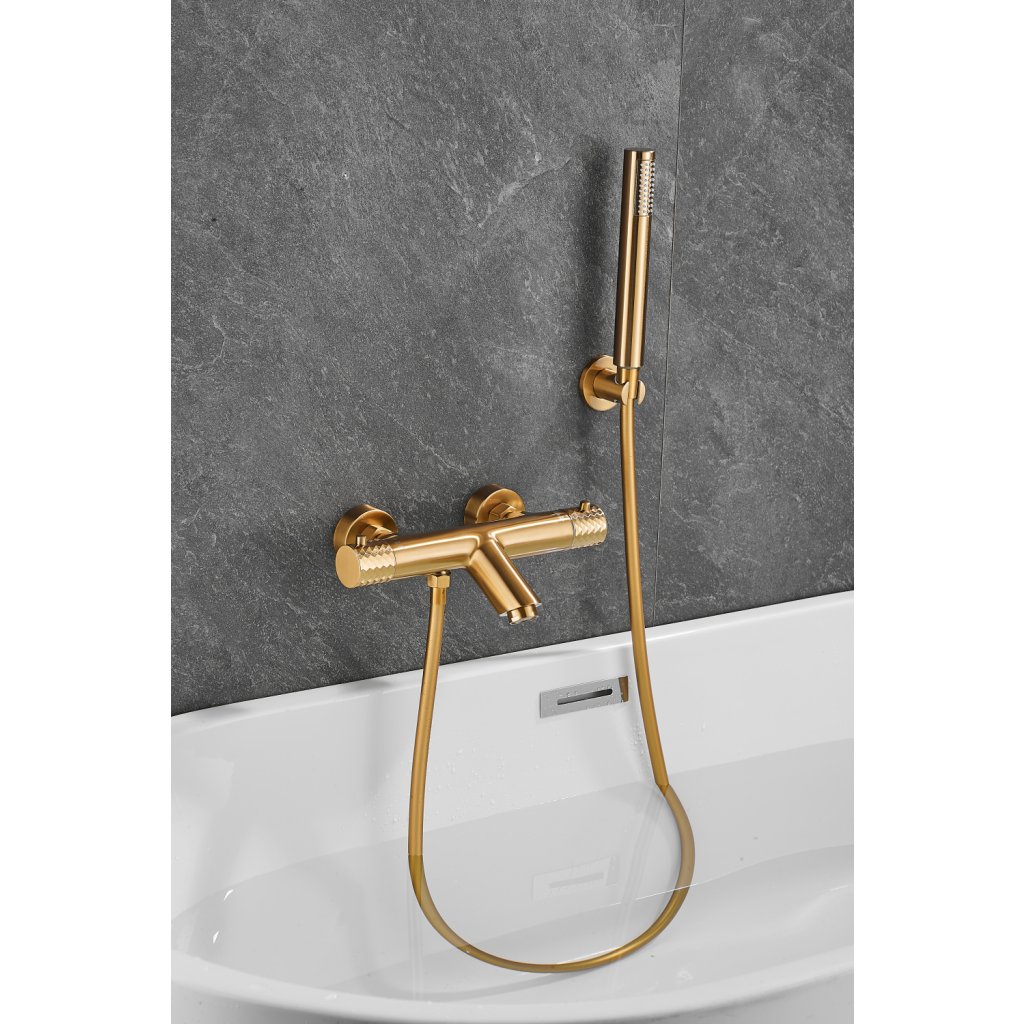 Gamma Roy, baterie termostatică pentru cadă cu set de duș manual, auriu mat, GMA-BRYPWT-BGD
