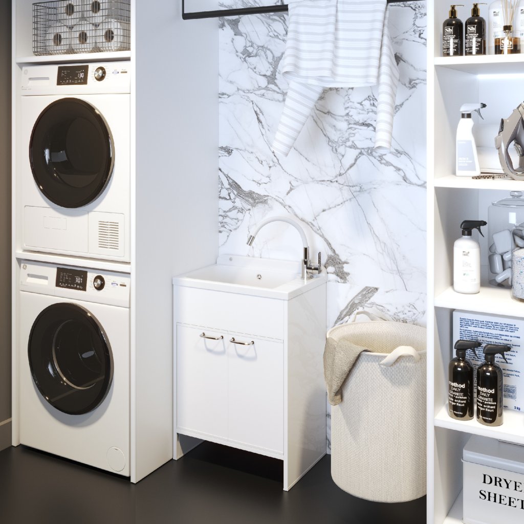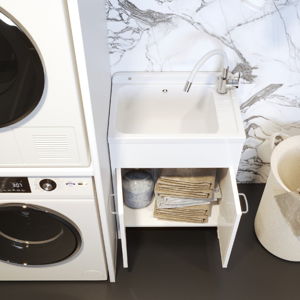 Dulapurile pentru chiuvetă SELVA, practice și cu design estetic, sunt fabricate din PVC de înaltă calitate, rezistent la umiditate și foarte ușor de curățat. Datorită finisajului său alb universal și mânerelor cromate moderne, sunt perfecte pentru diverse tipuri de spații - de la bucătărie, cameră tehnică, spălătorie până la atelier sau garaj. Dulapurile sunt concepute pentru a găzdui chiuveta SELVA și, în același timp, pentru a oferi un spațiu practic de depozitare pentru produse de curățare, accesorii sau unelte. Construcția stabilă, întreținerea ușoară și designul curat fac din acest model o soluție ideală pentru toate spațiile tehnice și auxiliare. Notă: Compartimentul pentru chiuvete nu este inclus în pachet - trebuie achiziționat separat.