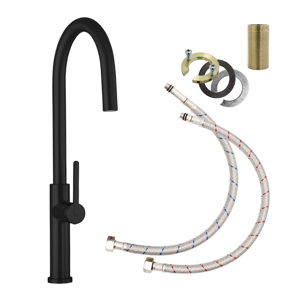 Gamma Slender, baterie de chiuvetă înaltă cu gura de scurgere, h-540, negru mat, GMA-BS-BK