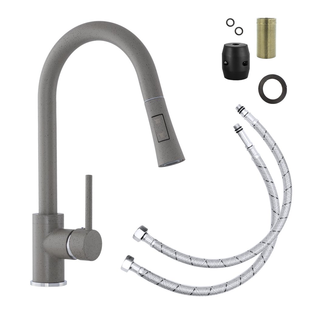 Gamma Taru N, baterie de chiuvetă înaltă cu gura de scurgere extrabilă cu 2 funcții, pete gri, GMA-BTN-G