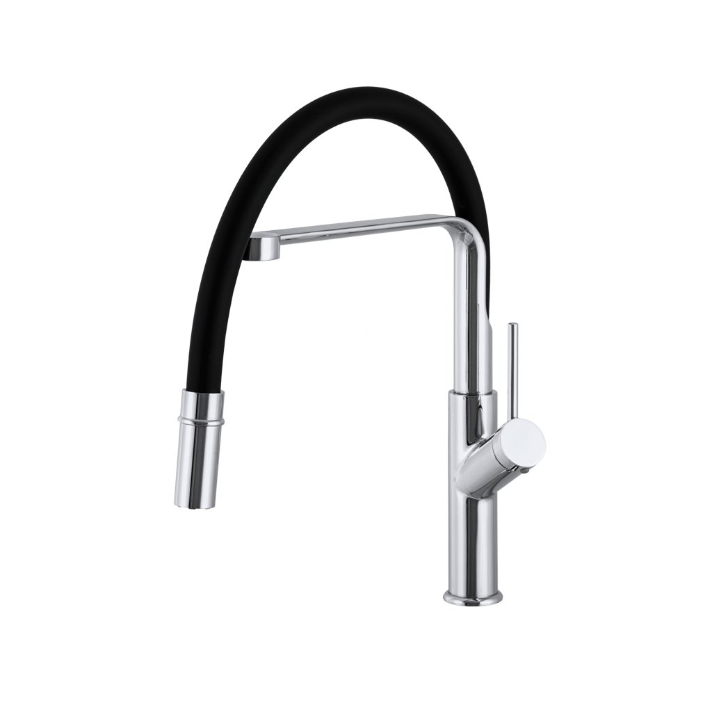 Gamma Venice, baterie chiuvetă înaltă cu braț elastic, h-465, negru-crom mat, GMA-BVK-CH