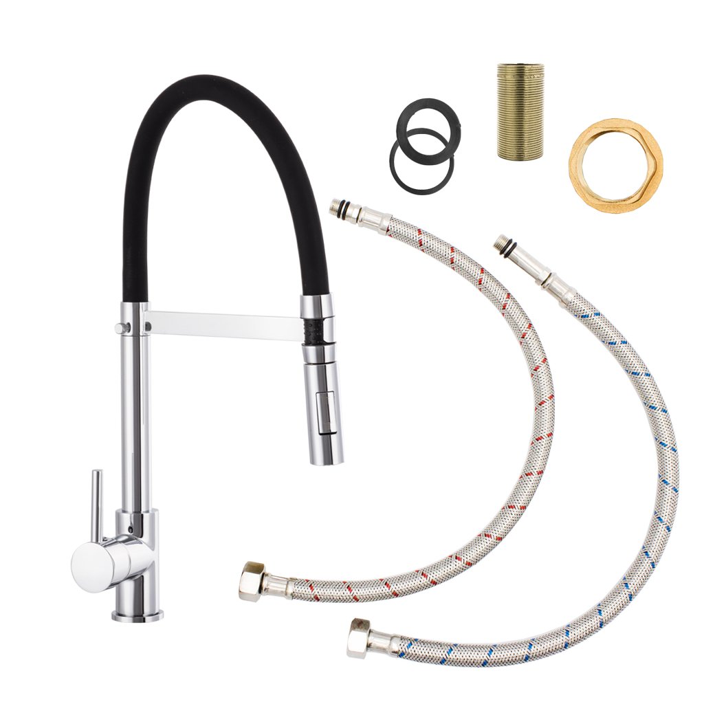 Gamma Vento, baterie chiuvetă cu braț elastic și gura cu 2 funcții, crom negru, GMA-BVOK-CH