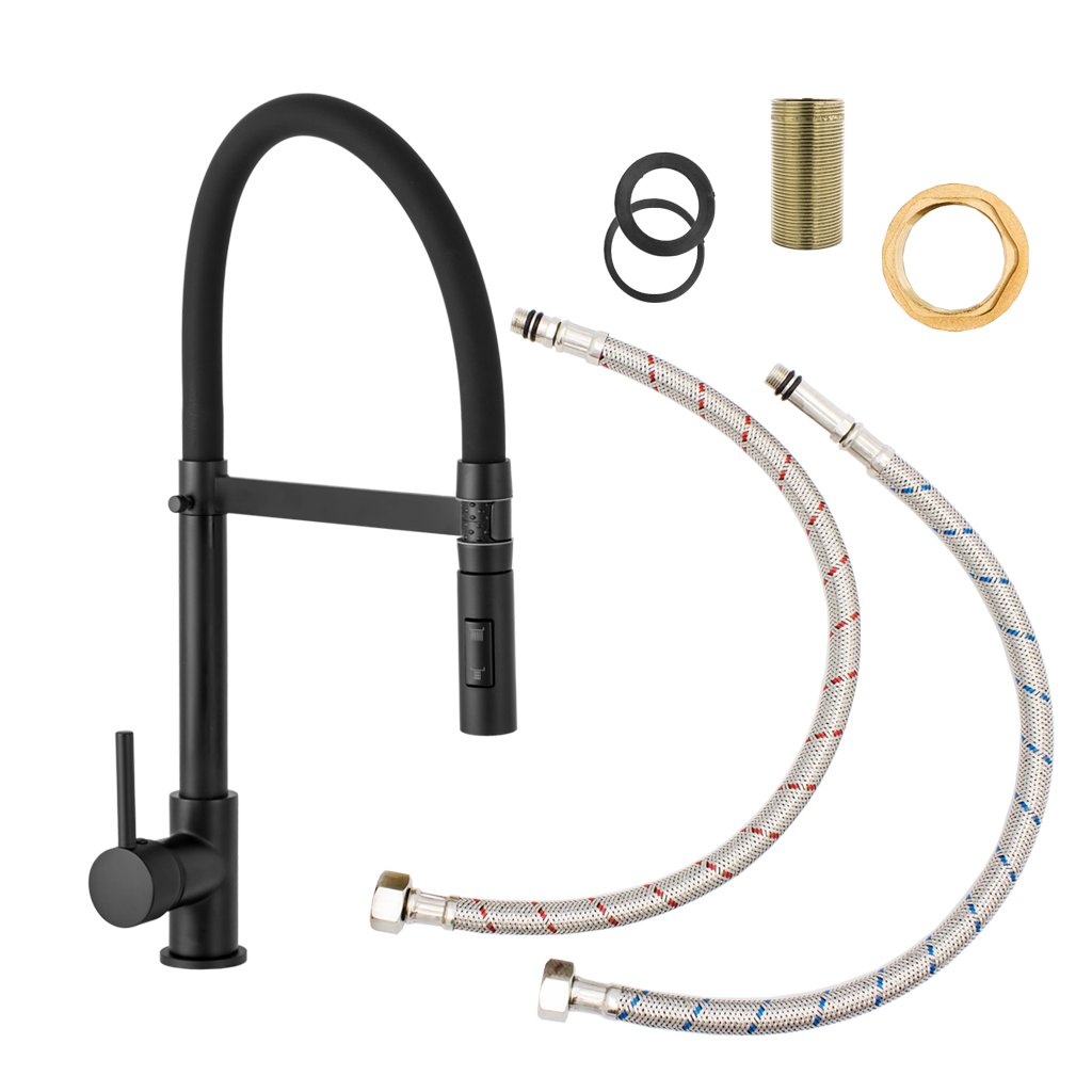 Gamma Vento, baterie chiuvetă cu braț elastic și gura cu 2 funcții, negru mat, GMA-BVOK-BK