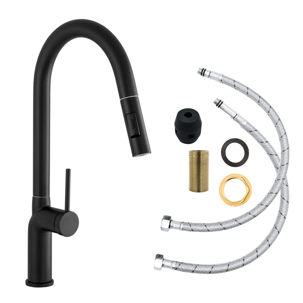 Gamma Vera, baterie pentru chiuvetă înaltă cu gura de scurgere h-550, negru mat, GMA-BV-BK