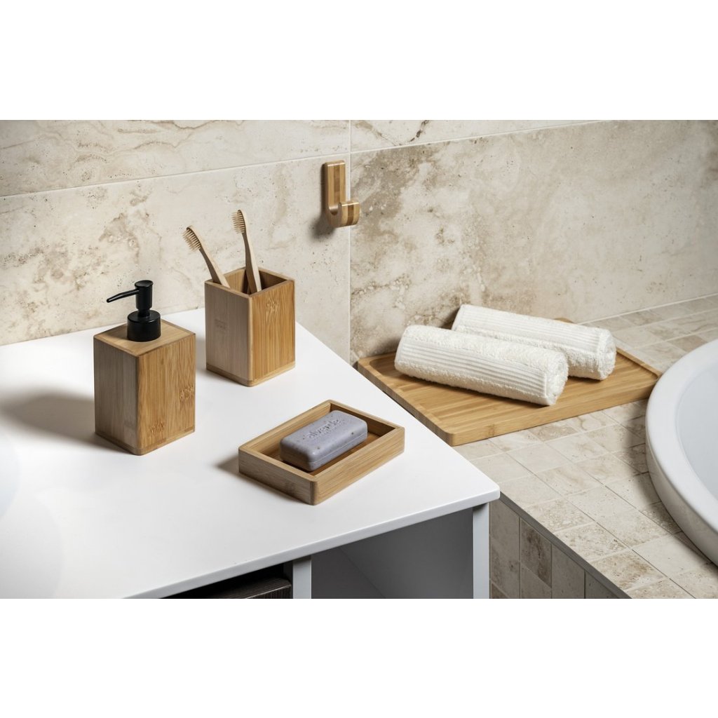 Materialul natural din bambus creează o atmosferă foarte plăcută și relaxantă în baie