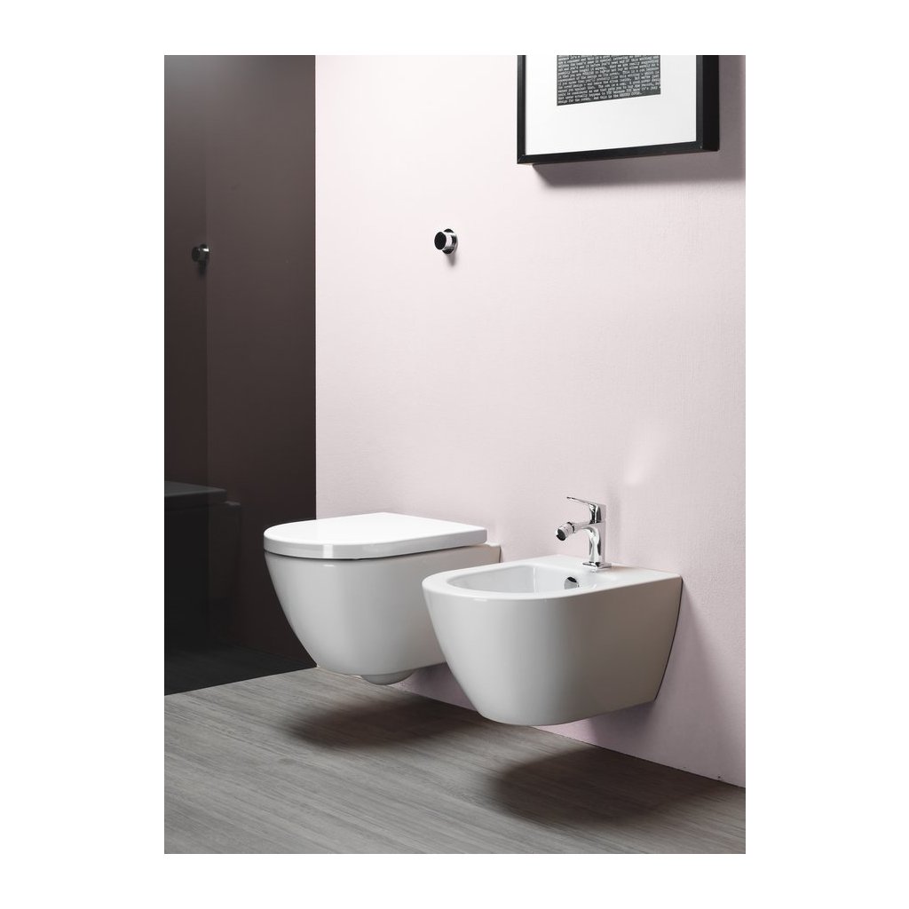 - noutatea este un vas de toaletă echipat cu sistemul de spălare SWIRLFLUSH®, sistemul SAVE WATER, care vă permite să spălați cu doar 4,5 litri de apă, și scaunul de toaletă cu sistemul SOFT CLOSE și QUICK RELEASE