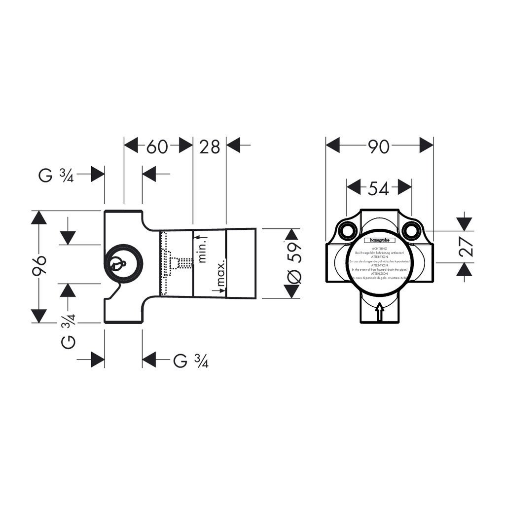 Hansgrohe, corp de bază pentru Quattro, comutator cu patru căi sub tencuială, DN20, HAN-15930180