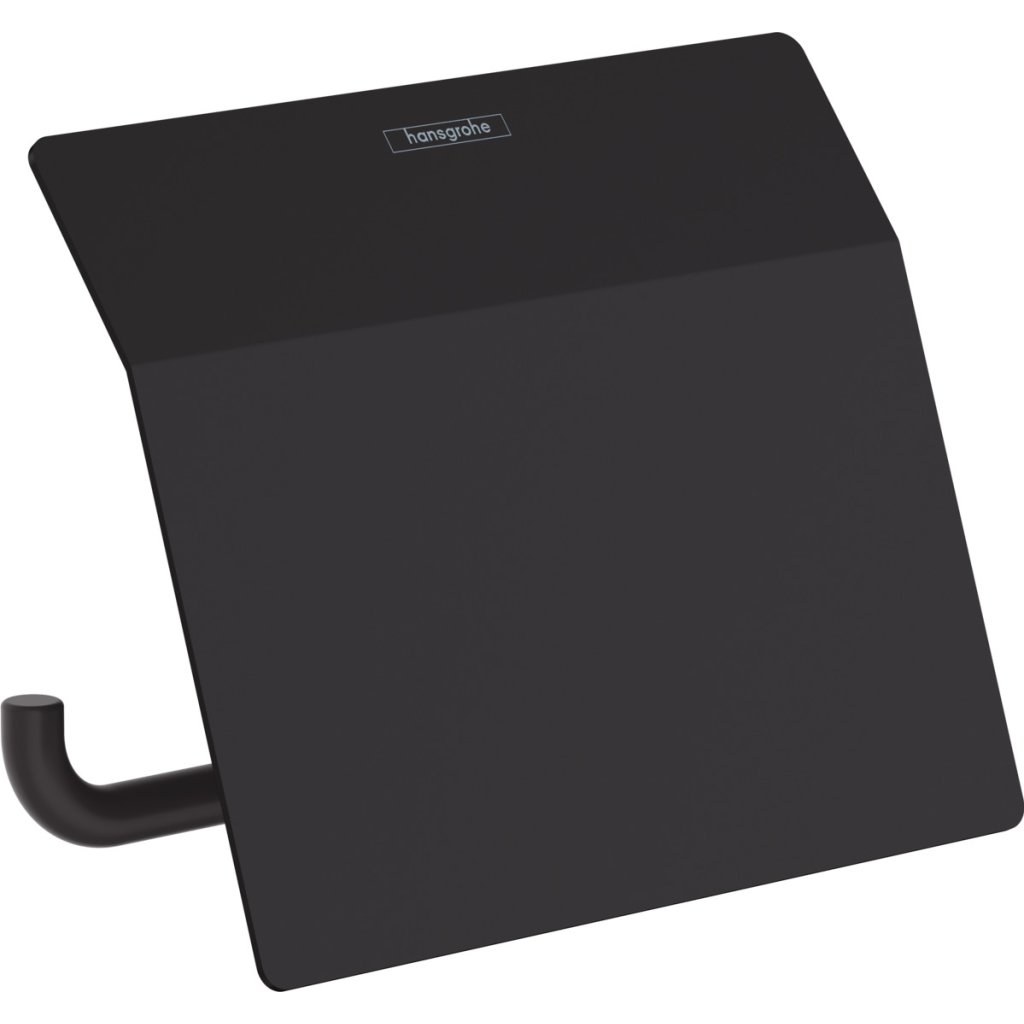 Hansgrohe AddStoris, suport pentru hârtie igienică cu capac, negru mat, HAN-41753670