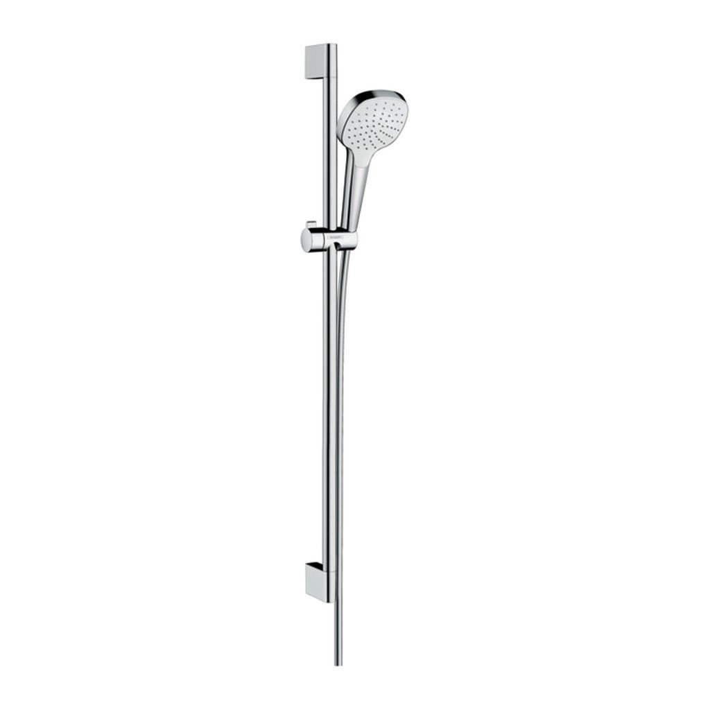 Hansgrohe Croma Select E, set de dus 1 jet EcoSmart 9 l/min cu tija de dus 90 cm, alb/crom, HAN-26595400
