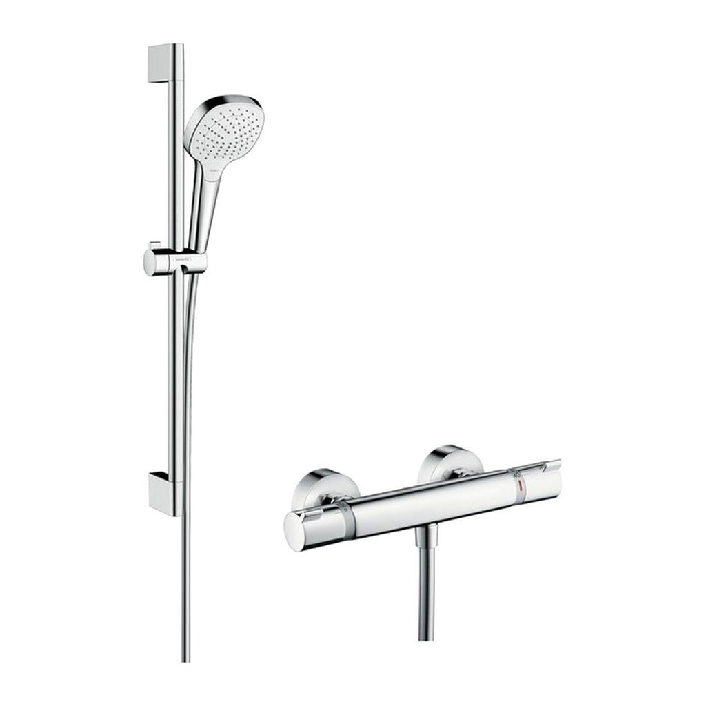 Hansgrohe Croma Select E, Set de duș Vario cu termostat Ecostat Comfort și tijă de duș 65 cm, alb/crom, HAN-27081400