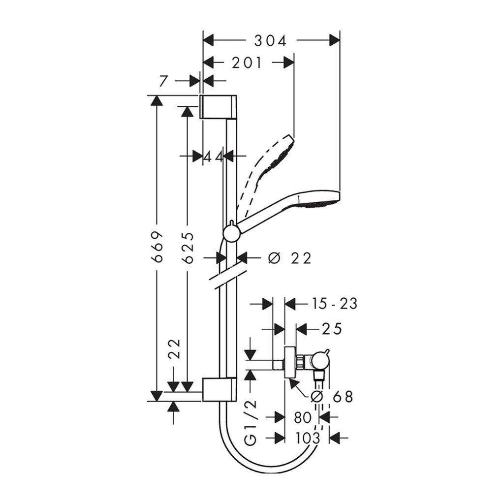 - Unghiul de înclinare al suportului de duș poate fi reglat în intervalul de 45°