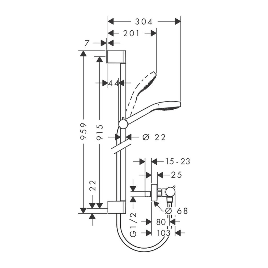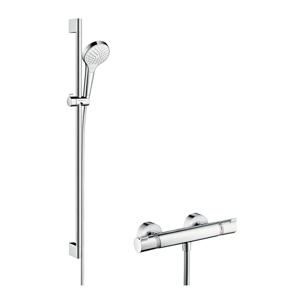 Hansgrohe Croma Select S, Set de duș Vario cu termostat Ecostat Comfort și tijă de duș 90 cm, alb/crom, HAN-27014400