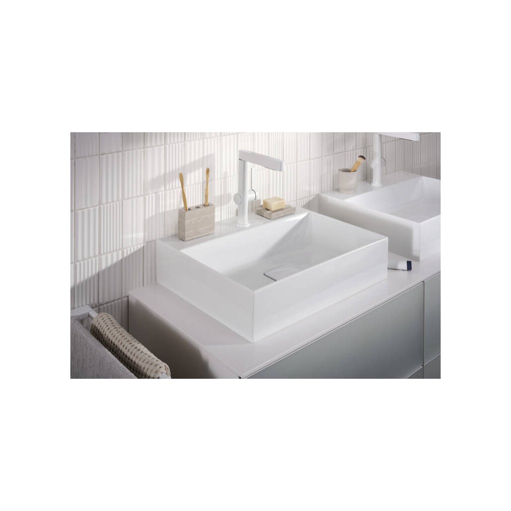 În același timp, această baterie este foarte practică - este echipată cu un spray retractabil , care poate fi extins până la o lungime de 500 mm. Oferă două tipuri de fluxuri - laminare și PowderRain - pe care le puteți comuta apăsând un buton. Duza este resetată automat când bateria este oprită. Datorita inaltimii sale de 248 mm si a zonei generoase de confort (ComfortZone) de 212 mm, aceasta baterie pentru lavoar este potrivita pentru chiuvete sau lavoare de blat. Priza bateriei masoara 178 mm. Îl puteți roti în intervalul de 120°.
