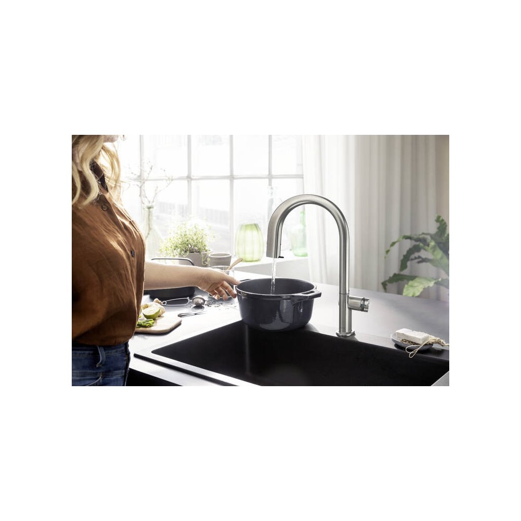 - Tehnologia ComfortZone pentru un confort excelent al utilizatorului. Mai mult spațiu atunci când vă spălați pe mâini, o modalitate convenabilă de a vă spăla părul sau de a umple recipientele. Cu cât robinetul se potrivește mai bine în zona chiuvetei, cu atât opțiunile dvs. sunt mai variabile și mai flexibile. Puteți folosi acest spațiu exact în funcție de ceea ce aveți nevoie și se potrivește nevoilor dumneavoastră