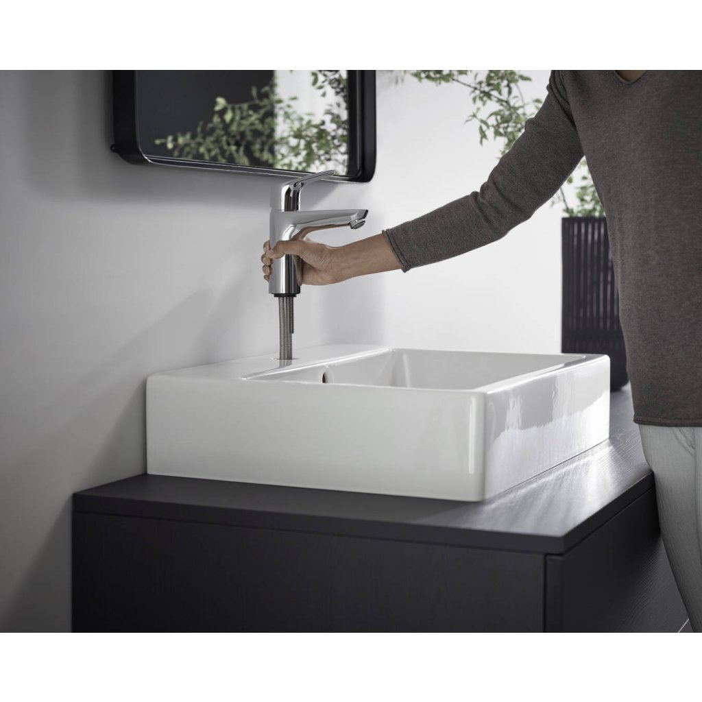 Focus E2 a primit prestigiosul Reddot Design Award pentru calitatea sa premium, tehnologiile speciale și designul excepțional. Zona de confort, adică distanța dintre priza bateriei și marginea inferioară, măsoară 100 mm. Lungimea duzei este de 119 mm. Datorită înălțimii sale, acest robinet pentru chiuvetă se potrivește perfect nu numai chiuvetelor, ci și chiuvetelor. Datorită tehnologiei EcoSmart, acest robinet pentru bazin hansgrohe Focus E2 este economic, prin el curg doar 5 litri de apă pe minut. Cu AirPower, fluxul de apă este, de asemenea, plin, plăcut aerat și moale. Cu tehnologia QuickClean, puteți îndepărta murdăria și depunerile de calcar din aerator prin simpla frecare cu degetul. Această variantă a robinetului este proiectată cu un kit de scurgere cu extractor.
