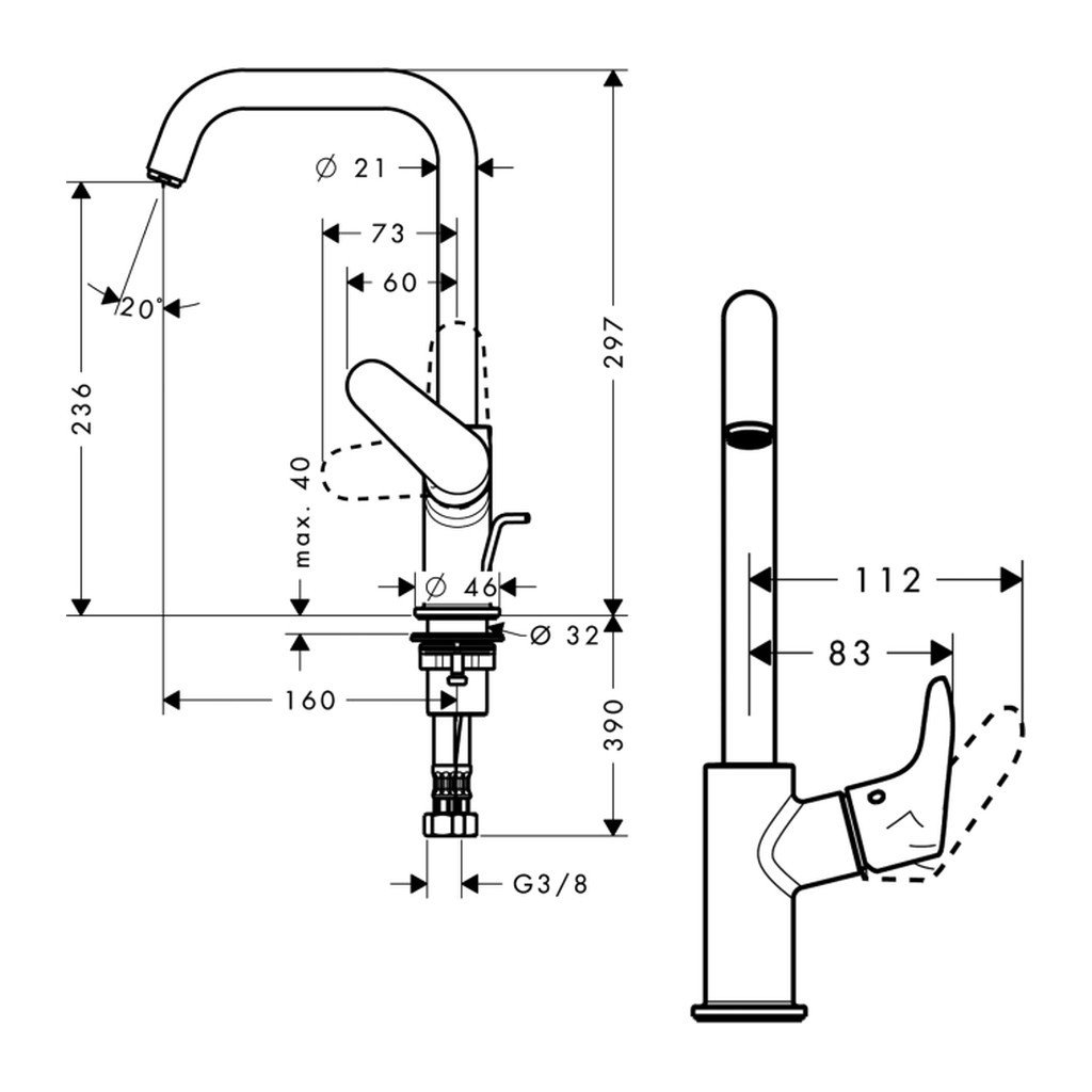 Hansgrohe vă oferă o serie de baterii de diferite înălțimi. Pur și simplu alege-l pe cel care îți oferă cel mai mult confort pentru rutina ta zilnică. Numărul de milimetri din numele robinetelor noastre înseamnă zona de confort. Datorită acestui lucru, puteți vedea dintr-o privire ce înălțime a robinetului se potrivește cel mai bine cerințelor dumneavoastră - și chiuvetei dumneavoastră. Cu zonele noastre mari de confort, vă puteți bucura de mult spațiu suplimentar.