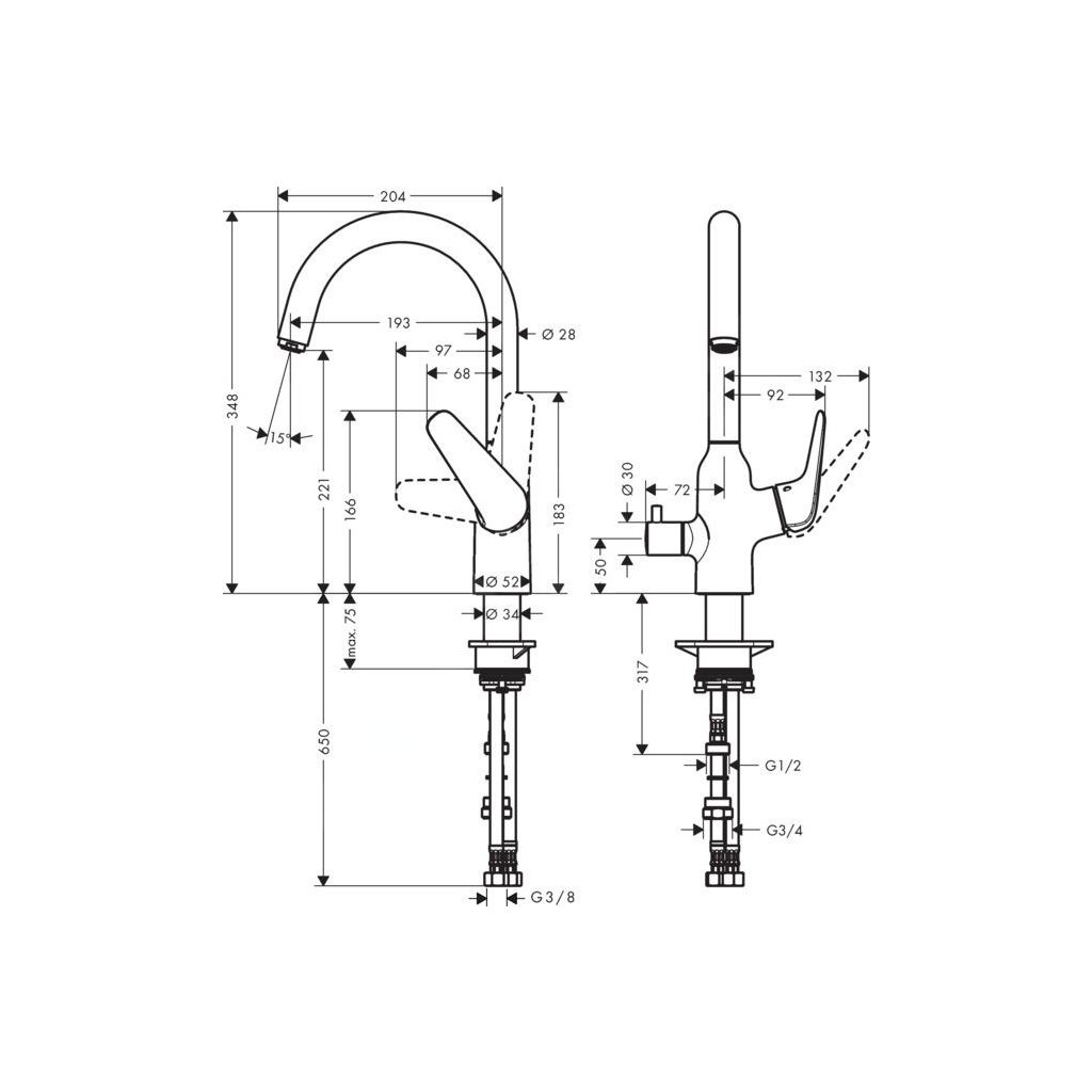 Hansgrohe Focus M42, baterie chiuveta M424-H220 cu supapă de închidere, crom, HAN-71803000