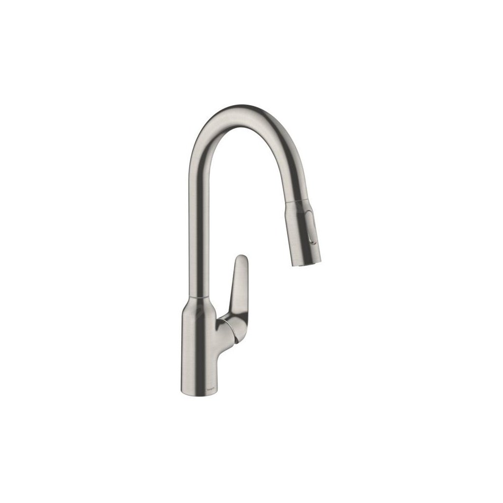 Hansgrohe Focus M42, baterie pentru chiuvetă M4216-H220 cu spray extractibil, aspect din oțel inoxidabil, HAN-71820800