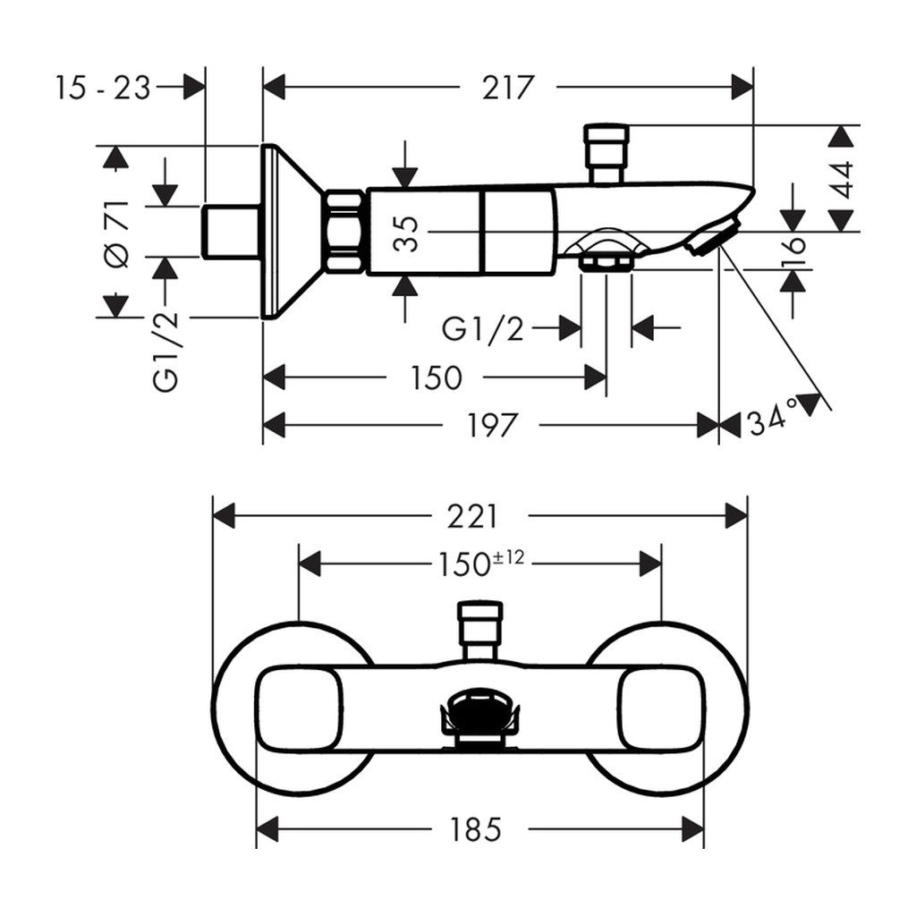 Hansgrohe Logis, baterie baie cu două robinete de perete, crom, HAN-71243000