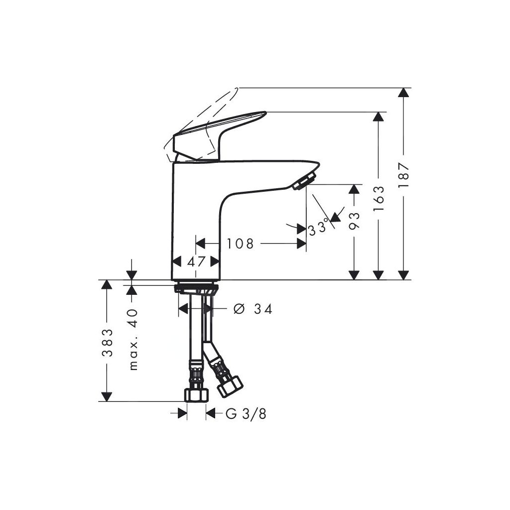 Hansgrohe Logis, baterie lavoar cu parghie 100, cu garnitură de apăsare, crom, HAN-71107000