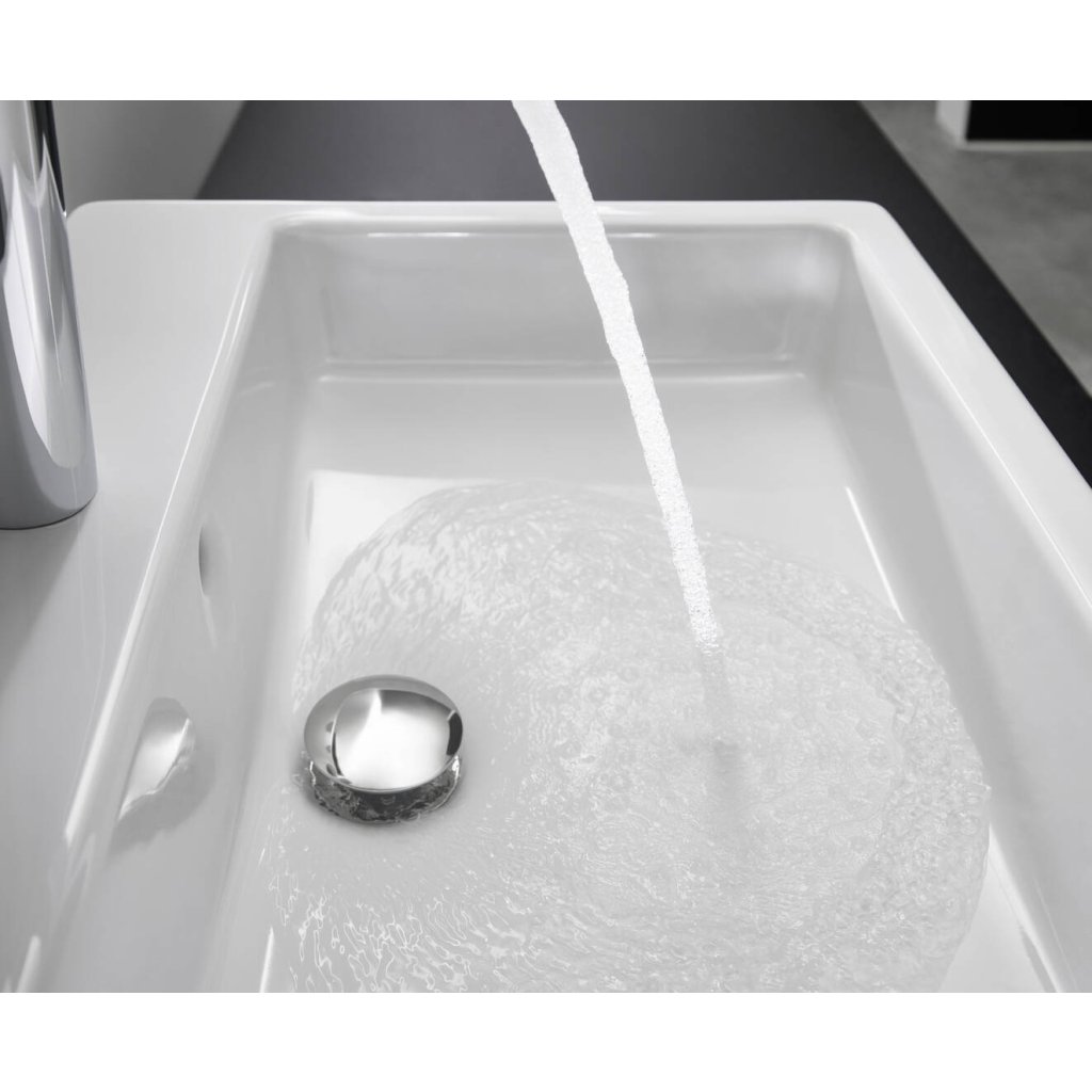 Inima bateriei este un cartus ceramic, care elimina sariturile neplacute la reglarea temperaturii dorite si a debitului de apa. Deci, controlul manetei este neted și precis. Avantajul este și limita reglabilă de temperatură, care reduce riscul de opărire și îți salvează portofelul în același timp. Tehnologia EcoSmart funcționează cu latura ecologică, deoarece economisește resursele de apă, menținând totodată tot confortul necesar pentru spălarea mâinilor, feței sau părului. Oferă un flux moale, plin, pe care îl creează prin îmbogățirea apei cu aer. Robinetul include și un set de scurgere G 1¼.