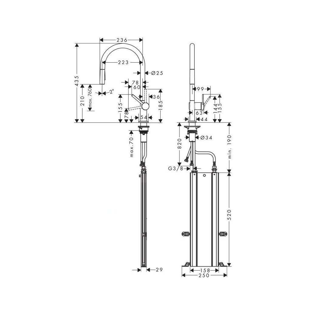 Hansgrohe M54, baterie chiuvetă Talis cu robinet extractibil, sBox, crom negru periat, HAN-72801340