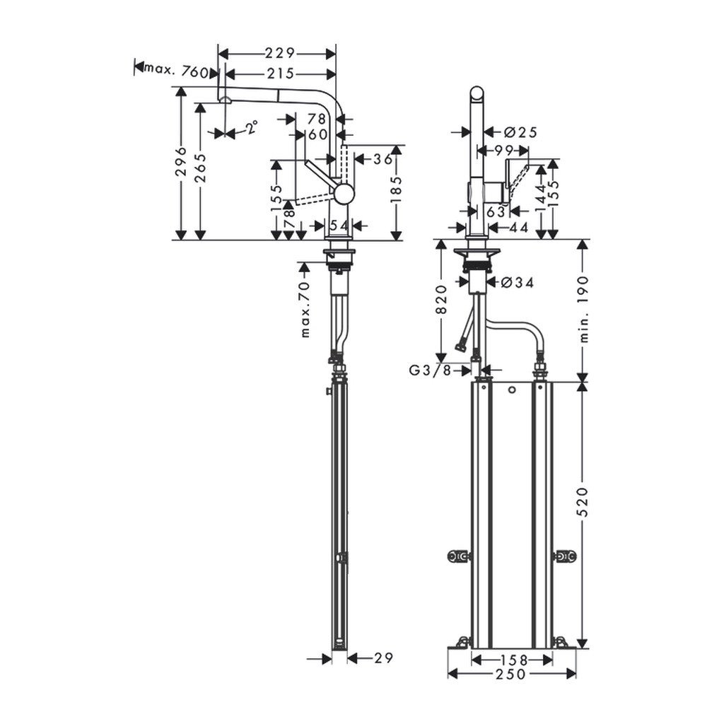 - furtunul poate fi extins până la 76 cm și garantează o muncă plăcută și libertate de mișcare în jurul chiuvetei