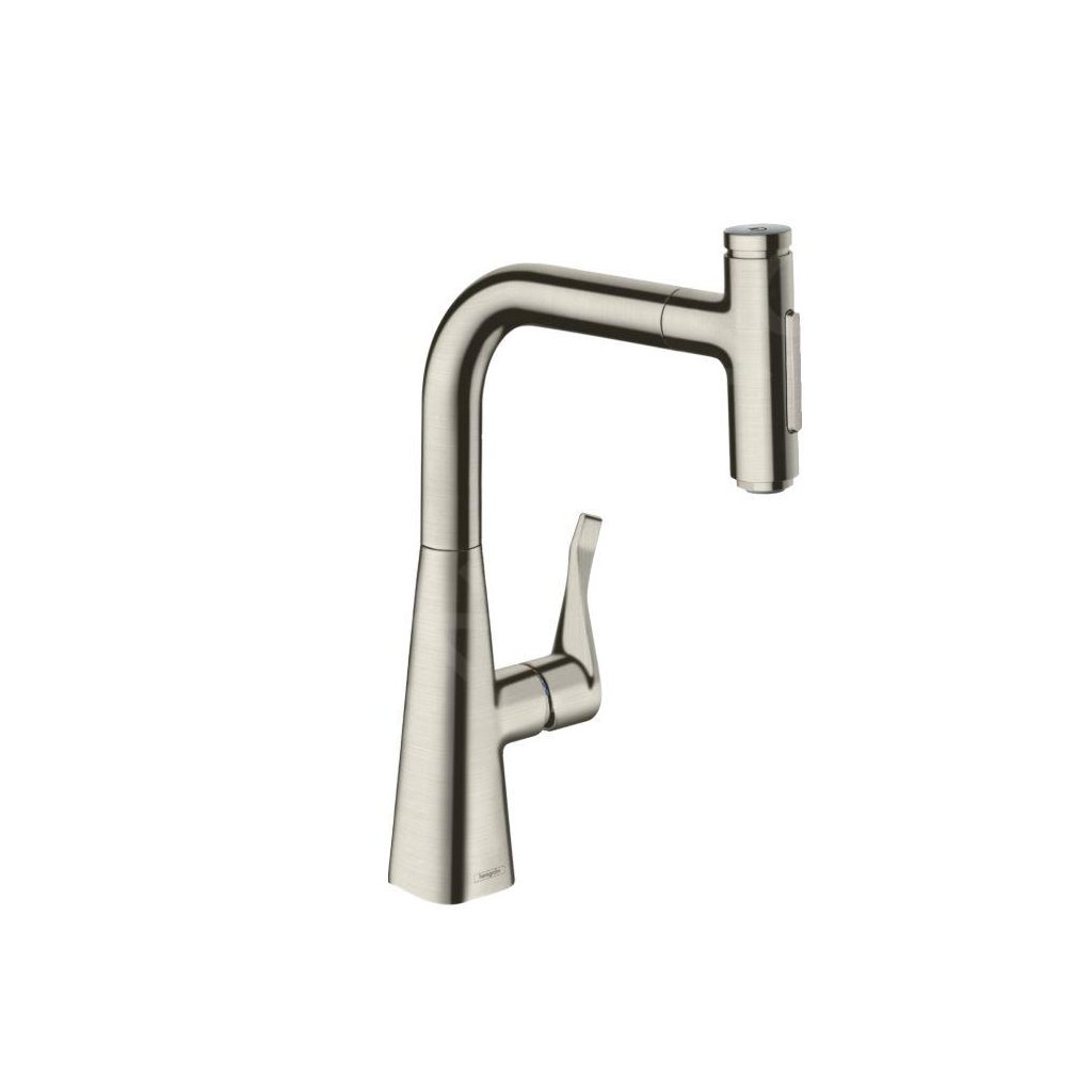 Hansgrohe M71, baterie pentru chiuvetă M7117-H240 cu spray extractibil, sBOX, aspect oțel inoxidabil, HAN-73817800