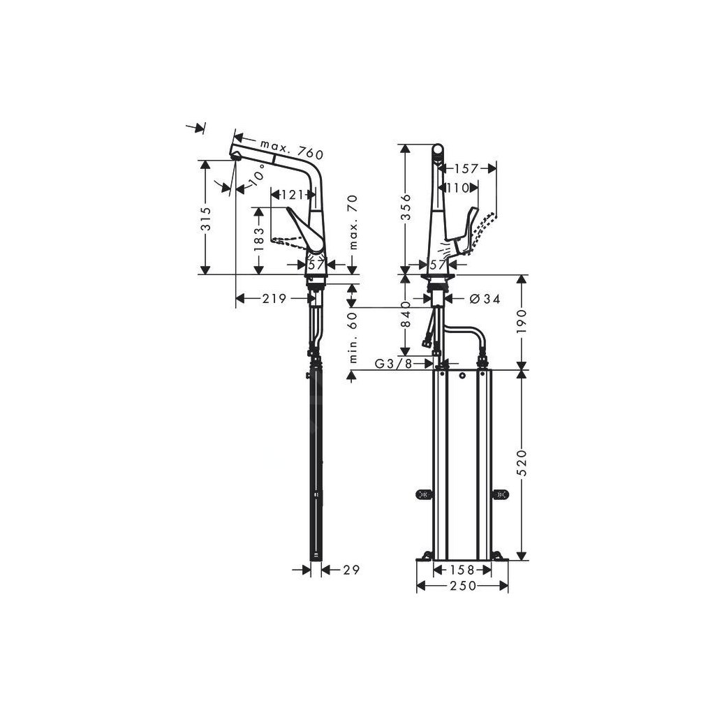 Hansgrohe M71, robinet pentru chiuveta M7114-H320 cu spray extractibil, sBOX, aspect inox, HAN-73812800