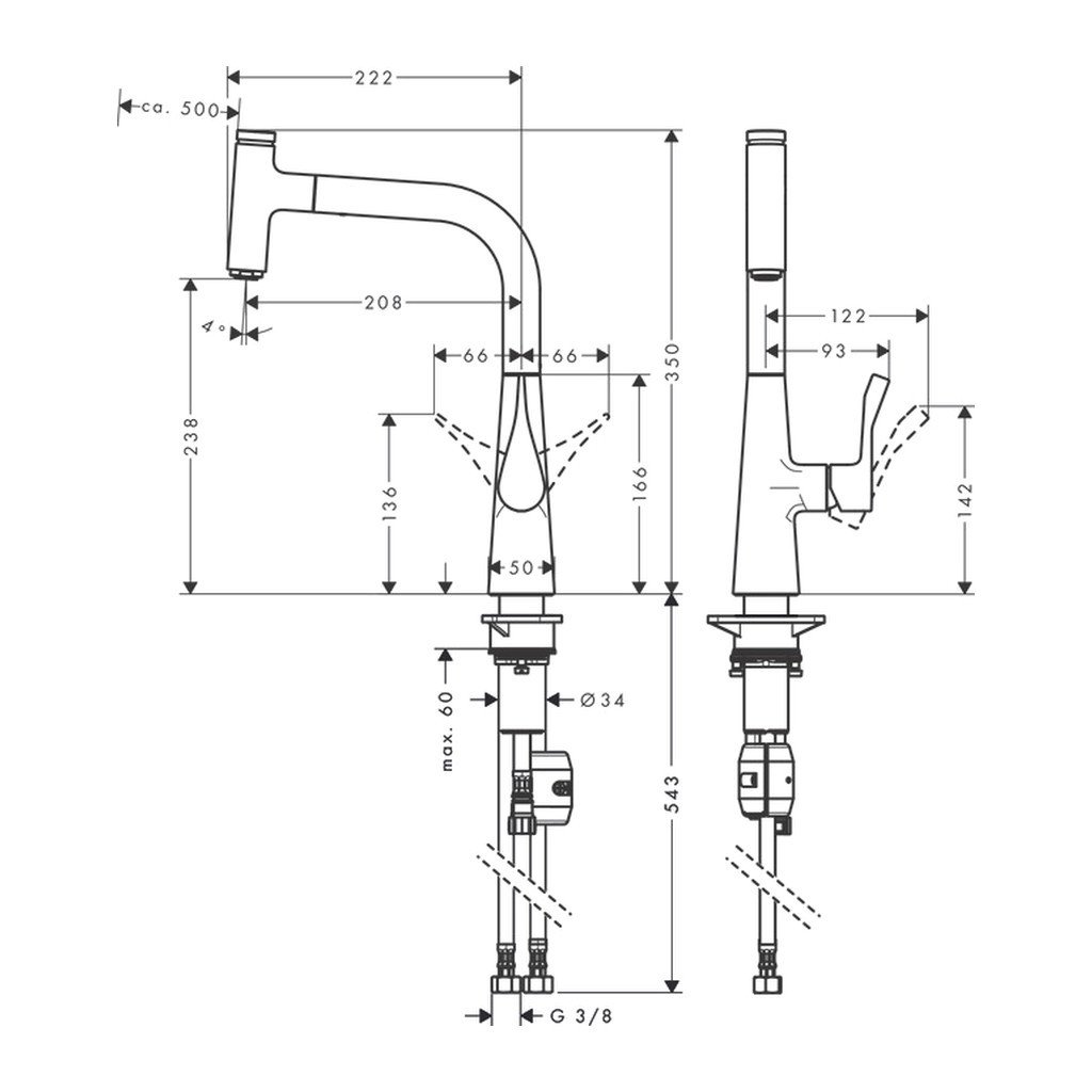 Hansgrohe Metris Select, baterie chiuvetă cu capăt extras, crom, HAN-14857000