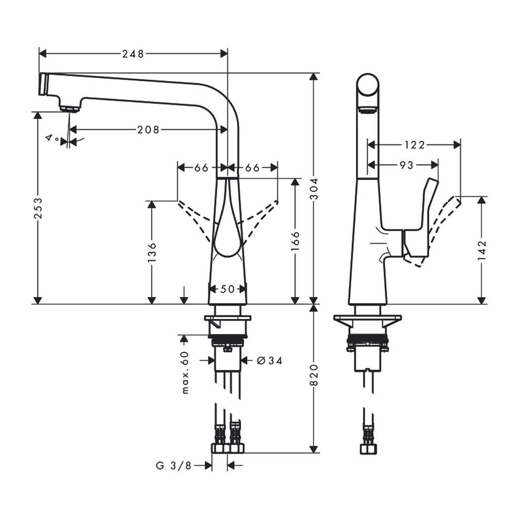 - Mod de instalare: furtunuri de conectare G ⅜