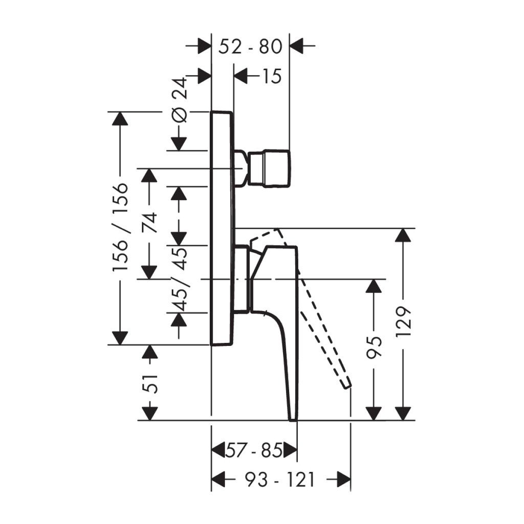 Hansgrohe Metropol, baterie de baie ascunsă cu combinație de siguranță, crom, HAN-32546000