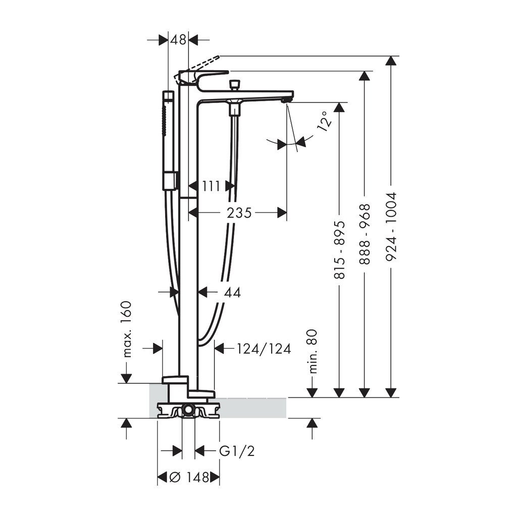 La robinetul de baie Hansgrohe Metropol veți aprecia nu numai designul excelent, ci și calitatea superioară , pe care o veți aprecia chiar și după mulți ani de utilizare a robinetului. Robinetul de cada Hansgrohe Metropol pe podea conține un cartus ceramic de înaltă calitate care va asigura funcționarea fără probleme a întregului robinet pe toată durata de viață. O parte a acestui robinet de baie montat pe podea este un duș manual cu tijă, care este echipat cu două tipuri de jeturi - Rain și MonoRain . Dușul de mână este completat cu un suport de duș și un furtun de duș neted cu lungimea de 1250 mm. 21 de litri de apă curg prin robinetul pentru cada Hansgrohe Metropol într-un minut. Duza cada masoara 235 mm.