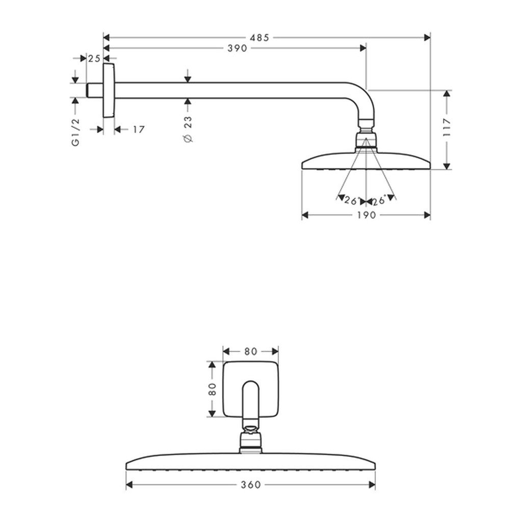 Hansgrohe Raindance E, duș suspendat 360 1jet EcoSmart cu braț de duș, crom, HAN-26605000