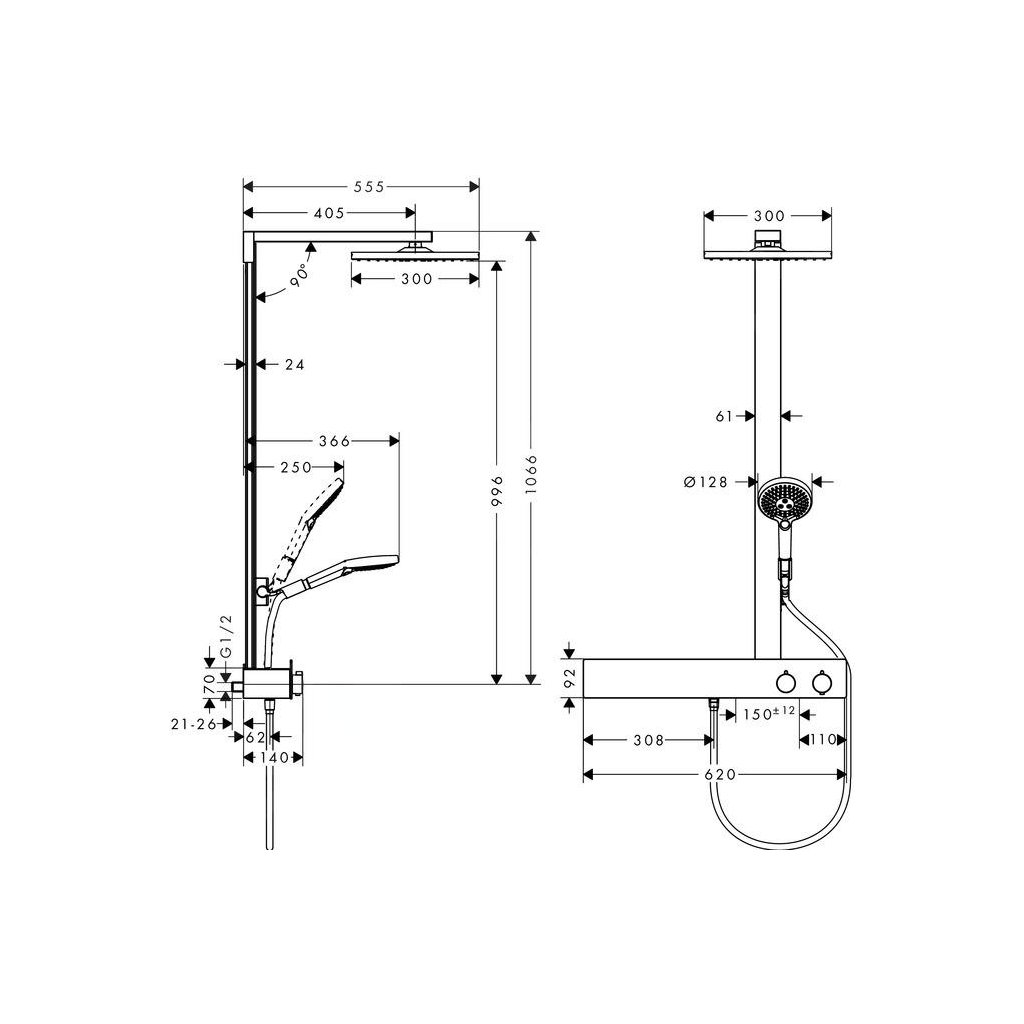 Hansgrohe Raindance E, set de dus Showerpipe 300 cu termostat 600, EcoSmart 9 l/min, crom, HAN-27364000