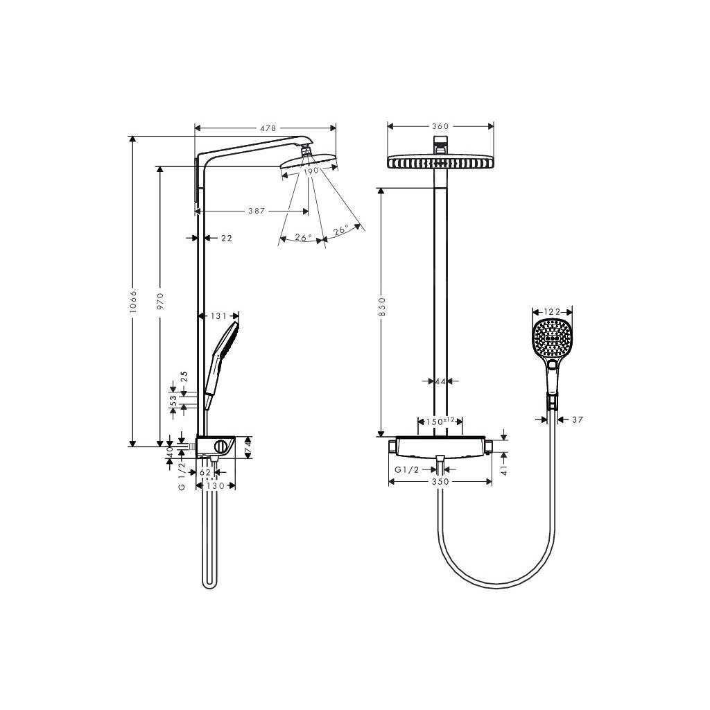 Hansgrohe Raindance Select E, set de dus Showerpipe 360 cu termostat, EcoSmart 9 l/min, alb/crom, HAN-27286400