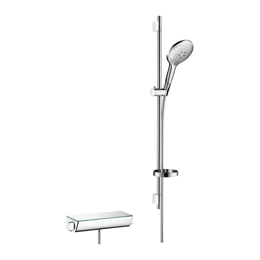 Hansgrohe Raindance Select S, set de dus 150 3jet cu termostat Ecostat Select si tija de dus 90 cm, alb/crom, HAN-27037400